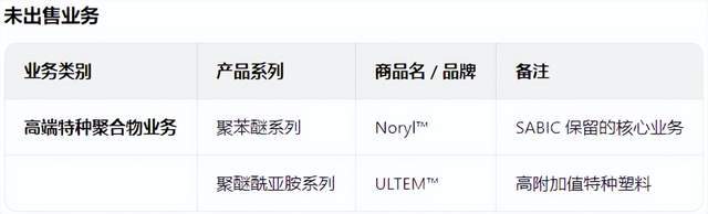 三、未出售的高端交易,值得预防的是,SABIC 正在出售时希奇保存了其高端特种鸠集物交易,蕴涵: Noryl™(聚苯醚系列) ULTEM™(聚醚酰亚胺系列) 这些高端资料不正在此次出售畛域内,证明SABIC仍看好高附加值特种塑料的另日起色。